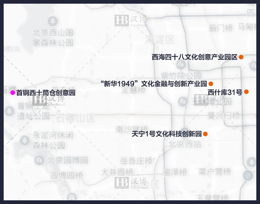 首钢西十筒仓创意园→西海四十八文化创意产业园区→“新华1949”文化金融与创新产业园→西什库31号→天宁1号文化科技创新园