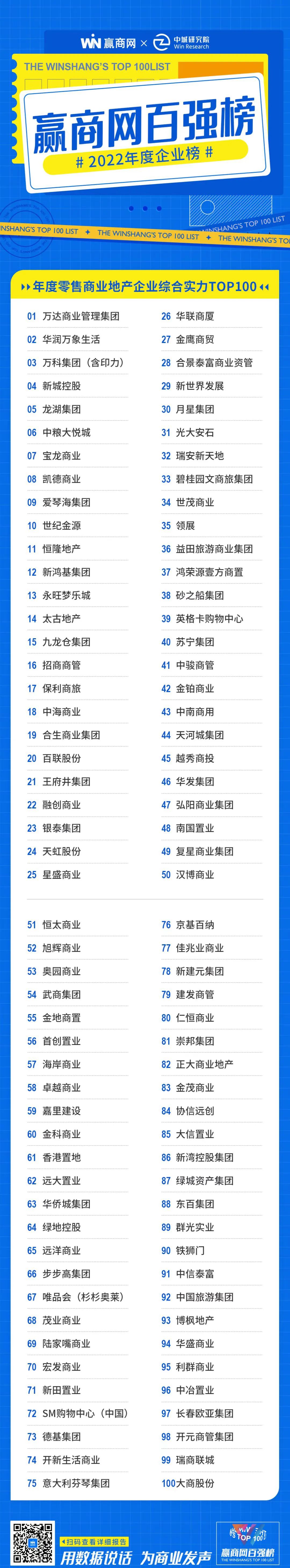 【赢商网百强榜】是由赢商网 X 中城研究院联合打造,结合客观数据、科学测评、价值评估及相关研究成果,对商业地产企业、购物中心及品牌商展开的全面、精准测评的榜单体系。