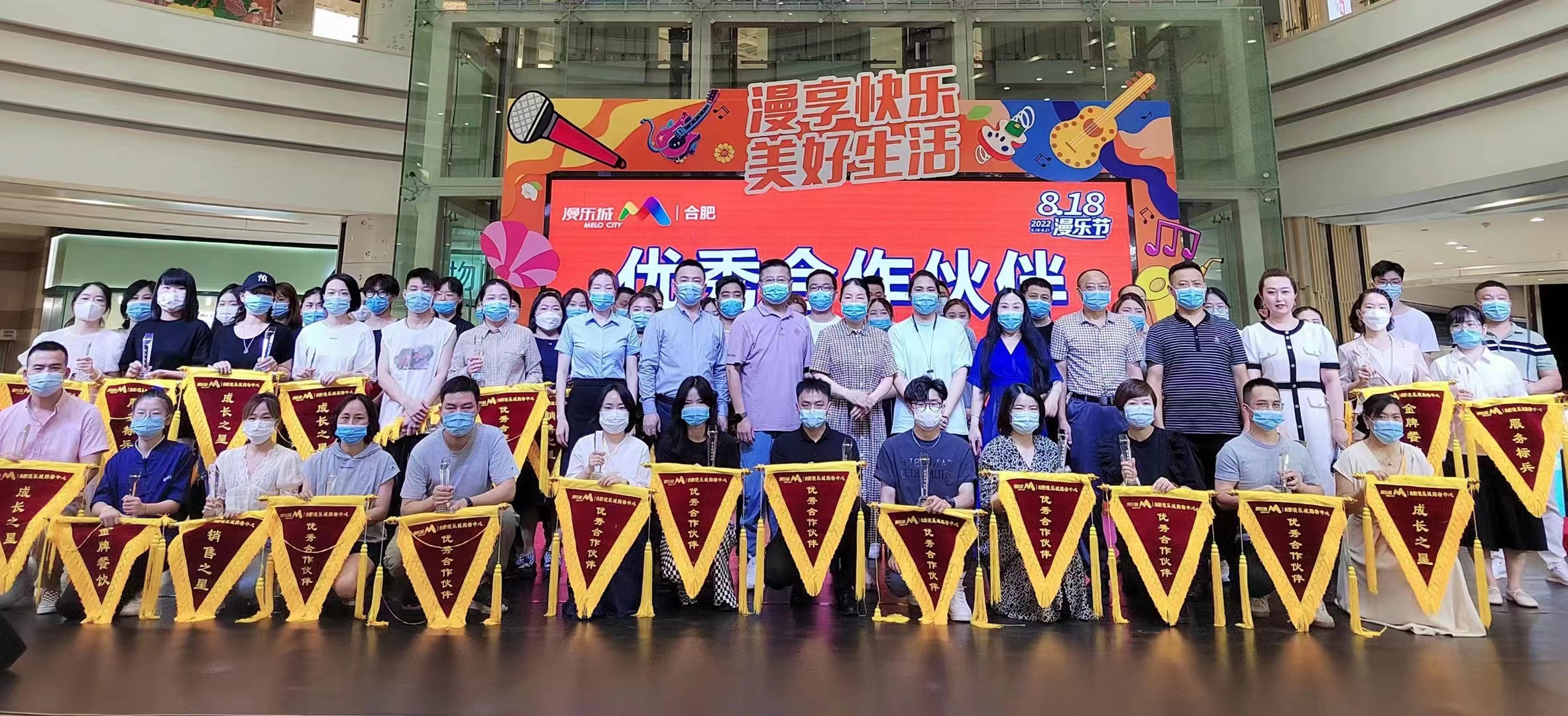 “疫情之下,商户经营很容易缺乏信心,我们作为商场的总管理者,要动用所有可能利用的资源与场景,与在场的商户进行密接与沟通,提升相互的信任,以达到共赢。” 合肥漫乐城购物中心总经理程国庆女士介绍。比如,在2022年的项目原创IP活动“8.18漫乐节”年中庆活动上,项目就延续了上一年度的传统,以2021-2022年度优秀商户表彰大会拉开了整体活动的序幕。8月18日当天上午,百余组商户参与了表彰大会,优秀合作伙伴、销售之星、成长之星、金牌餐饮、服务标兵、优秀店长等商户奖项一一颁发,大家汇聚一堂,表扬先进,树立模范,展望未来。