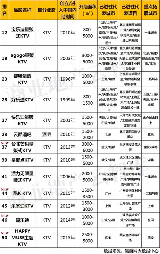 6、上榜KTV/酒吧业态以KTV为主(酒吧仅1席),经营模式突破传统,开始嫁接互联网打造“线上线下互动平台“;KTV内开始跨包厢互动,有时通过明星个人演唱会等形式,将KTV变成综合社交的娱乐场所。