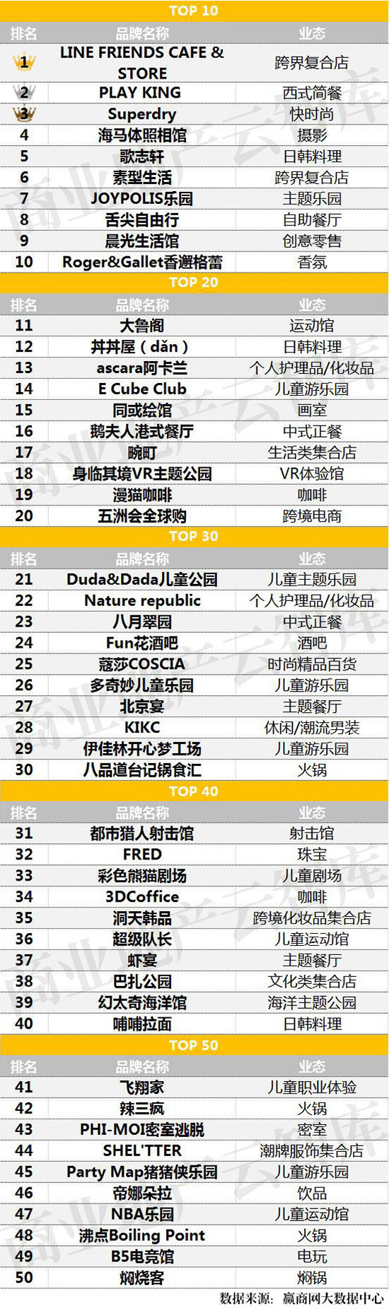 一、2016年3季度最受购物中心关注新兴品牌TOP50