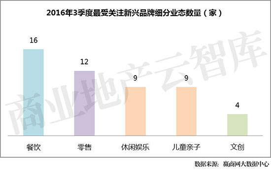 ①上榜的9席新兴休闲娱乐各业态分布均匀,各占1席;