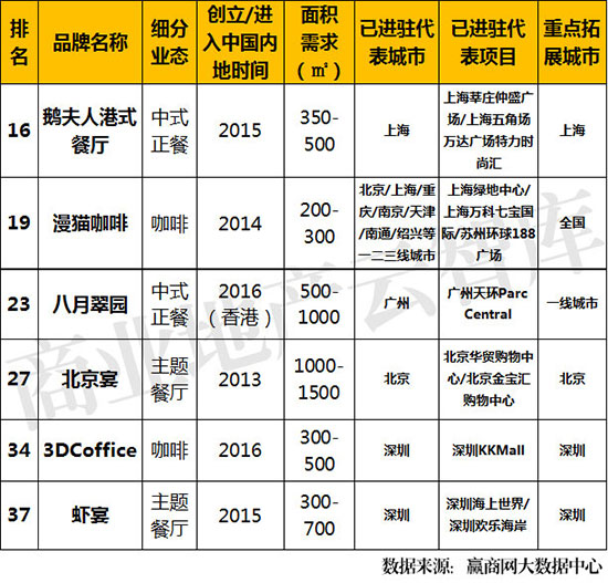 ①中式正餐、主题餐厅、咖啡各上榜2席;除漫咖啡外,其余5席品牌拓展均首选一线城市;