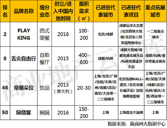 ①TOP50中,2016年创立/进入中国内地的品牌占比高达32%,其中新兴餐饮品牌最受关注。