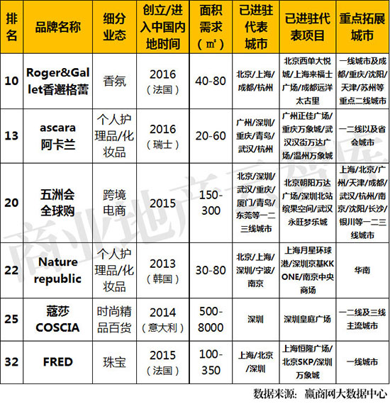 ①上榜的5席品牌中,2016年创立/进入中国内地的品牌占3席,其中2席为国外品牌;