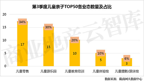 ①上榜品牌中儿童零售17席,受关注程度最高,模式创新让该业态实体经营依然强劲;