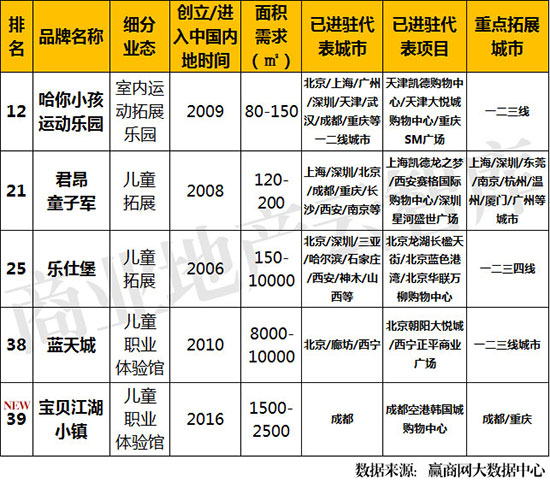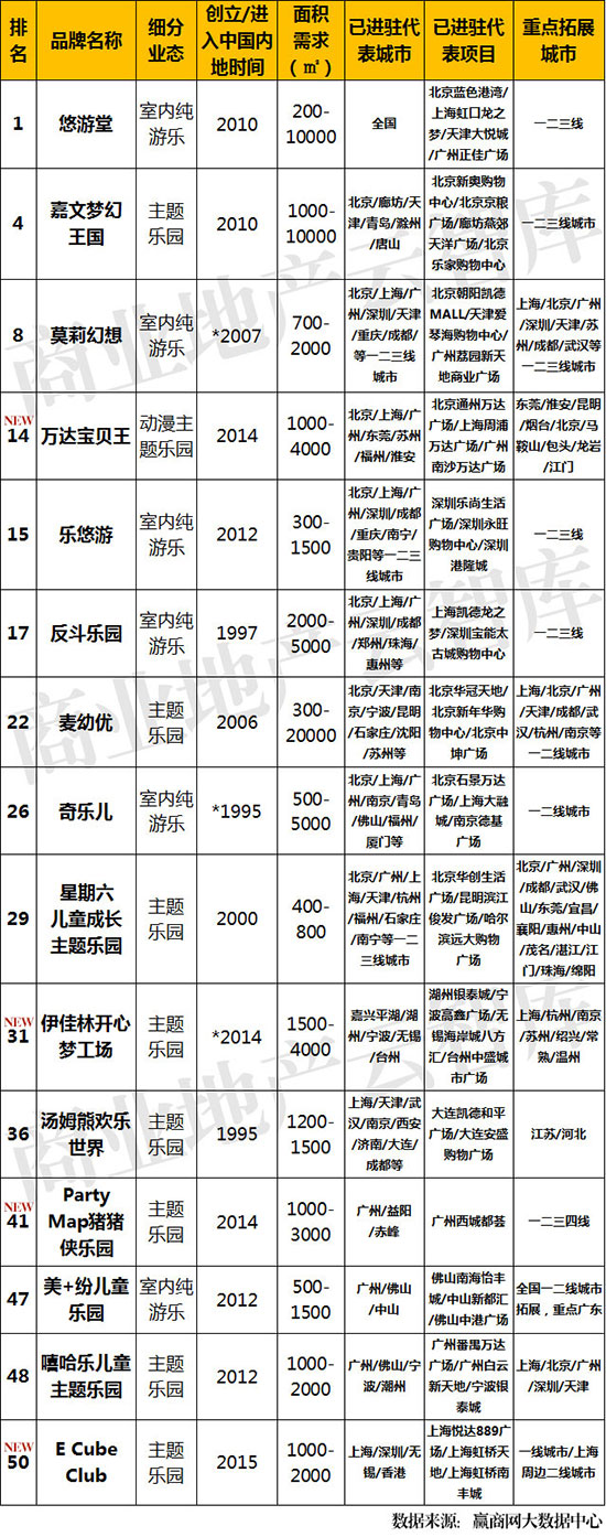 ①上榜品牌仍以传统实力室内主题游乐为主,具备很强的可复制性,拓展空间较大。