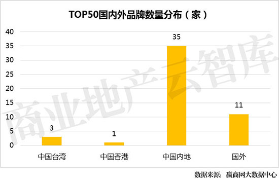 TOP50中,中国品牌占39席,其中中国台湾和中国香港分别占3席、1席。中国本土儿童亲子品牌更受购物中心关注。