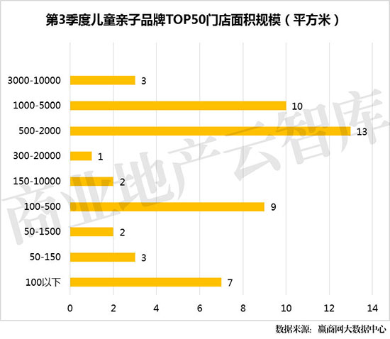 ②此外,门店面积达到或超过10000平方米的品牌,一般为较大型的儿童体验馆或儿童游乐园。门店规模在100平方米以下的,基本上是儿童零售品牌。