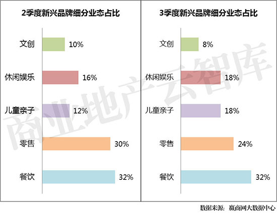 ①与2季度相比,3季度休闲娱乐、儿童亲子占比分别上升2%、6%,零售占比下降6%;