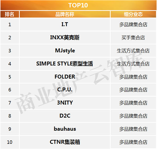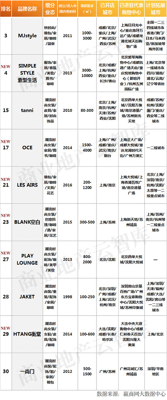 一、2016年度购物中心关注潮流集合店TOP30