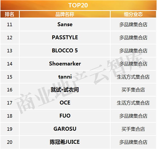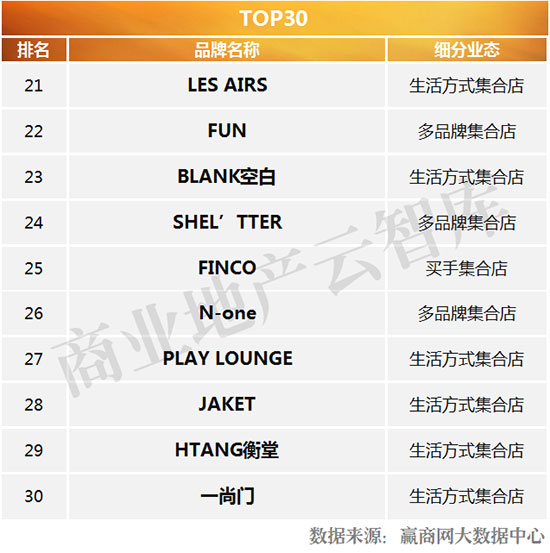 二、2016年度购物中心关注潮流集合店TOP30解读