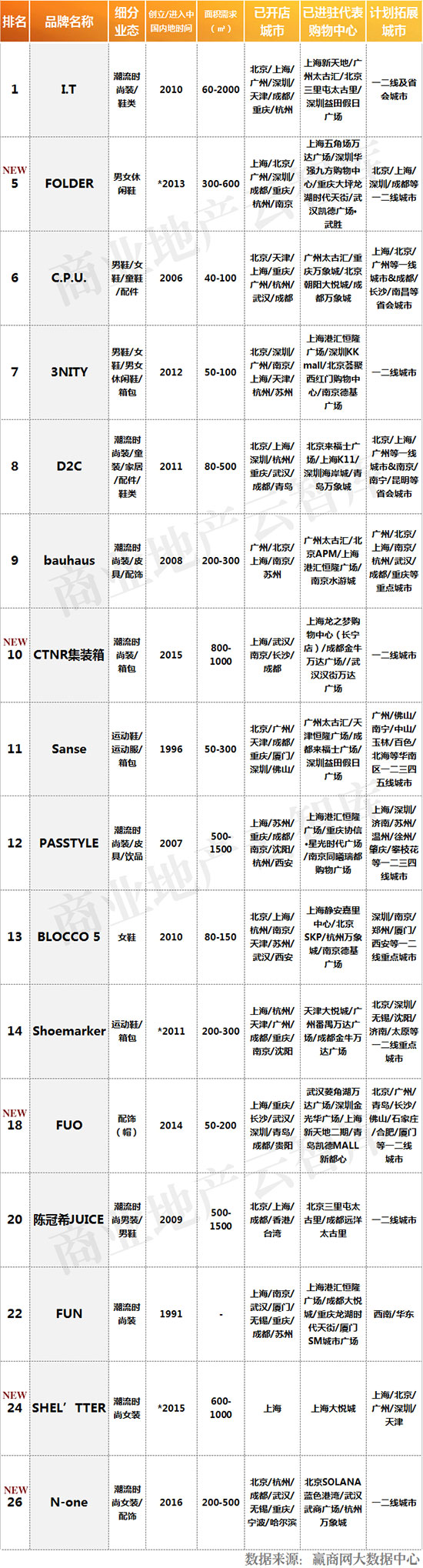 注:带有“NEW”表示品牌为2013年及以后创立/进入中国内地的新兴品牌