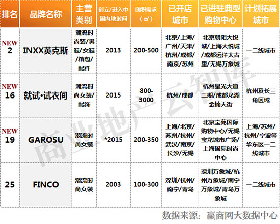 特别说明:未上榜品牌,除暂未达到我们的测评标准外,还可能存在如下原因:①未在赢商网上传品牌信息;②已在赢商网上传品牌信息,但相关数据因久未更新而无法采用,或品牌联系方式失效,我们无法核实。