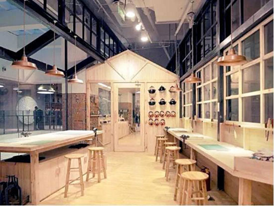 跨界复合店开店面积需求较大,注重多种生活体验式服务空间和情景打造,多含图书、服饰、咖啡店、手艺教室、美食教室、皮革工坊、家庭摄影、花艺空间、亲子空间等,可供顾客在店内消磨全天时间;