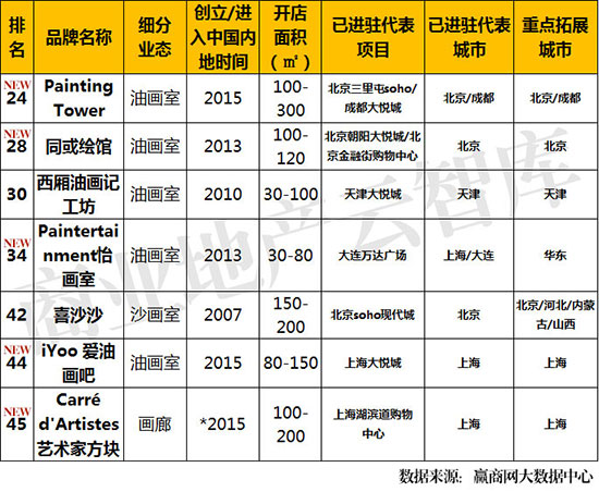 上榜的7席品牌中,油画类画室占5席。画室越来越多地针对零绘画基础客户而设置自助油画体验,推广“人人都可以是艺术家”的理念,享受艺术创作的乐趣,休闲指数更高;