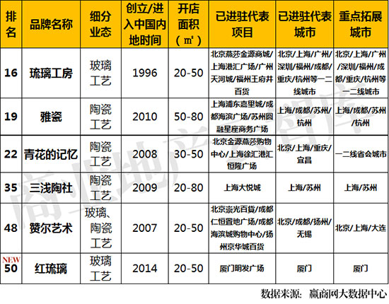 其中5席为成熟品牌,工艺品不但对原创制作水平要求较高,更需要时间沉淀,并不断注入创新元素;工艺品收藏价值高,中高端市场更为稳定。