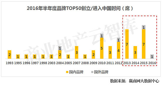 ②2015年创立的品牌上榜率最高;