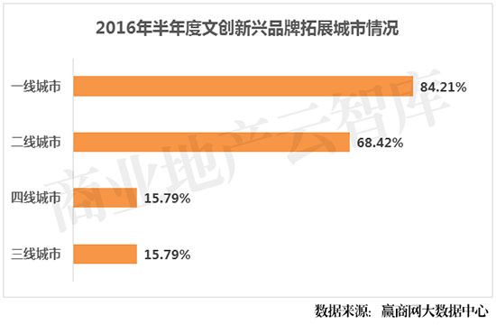 新兴品牌中有三四线城市拓展意向的业态多为创意产品,该类业态可复制性较强,连锁速度较快。