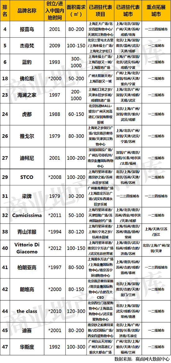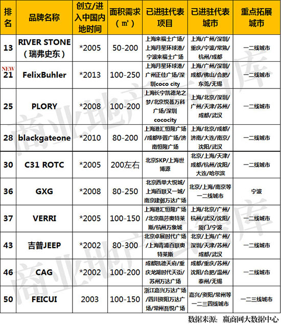 特别说明:未上榜品牌,除暂未达到我们的测评标准外,还可能存在如下原因:①未在赢商网上传品牌信息;②已在赢商网上传品牌信息,但相关数据因久未更新而无法采用,或品牌联系方式失效,我们无法核实。点击”阅读原文“填写品牌信息,即可进入“大数据排行榜”测评体系,并获赠在【拓展中国】免费发布1次品牌拓展计划。