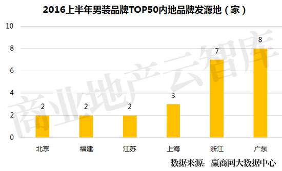 其中以来自广东省的男装品牌最多,达到了8家;其次为浙江,达7家。