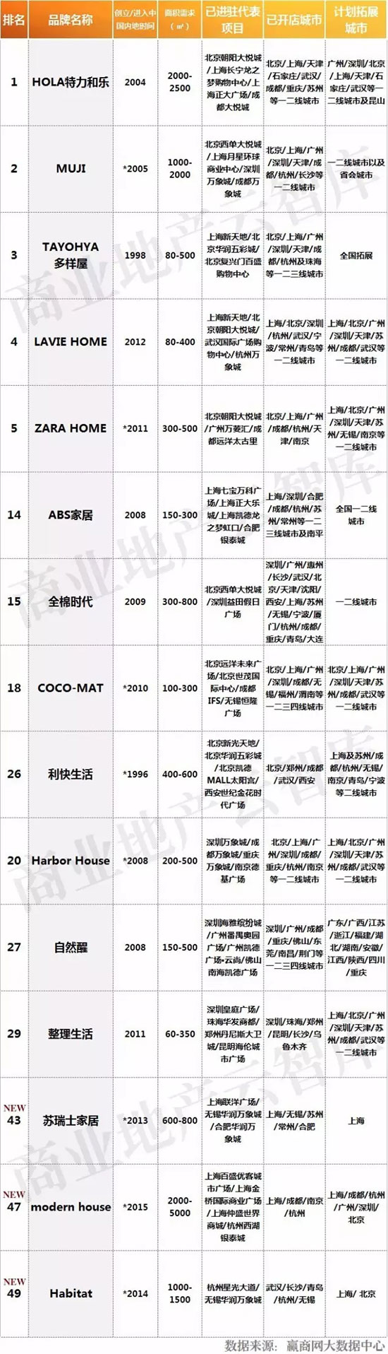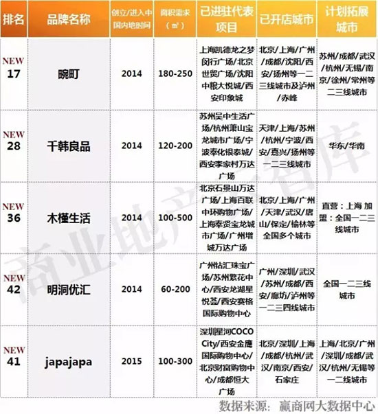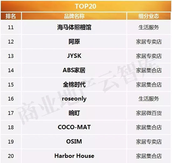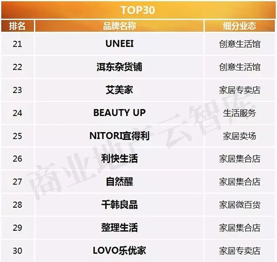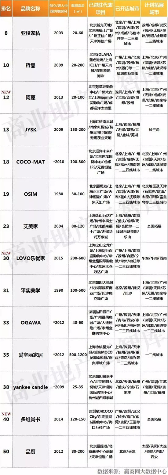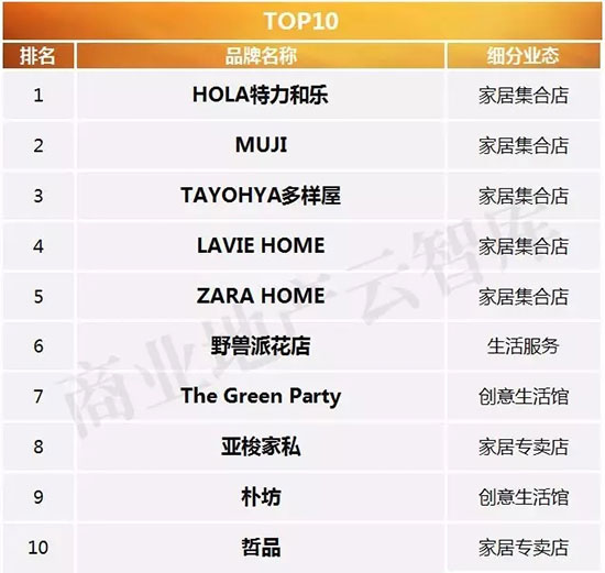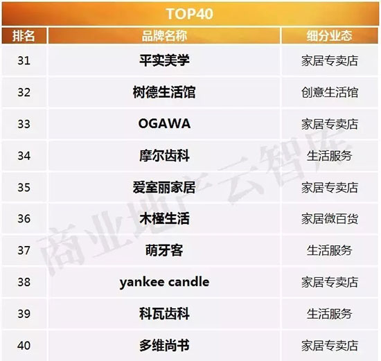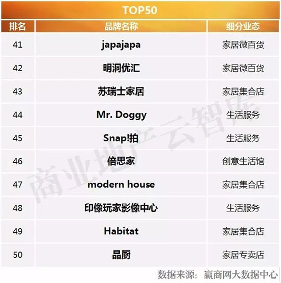 三、2016年度购物中心关注家居生活品牌榜TOP50特性总结