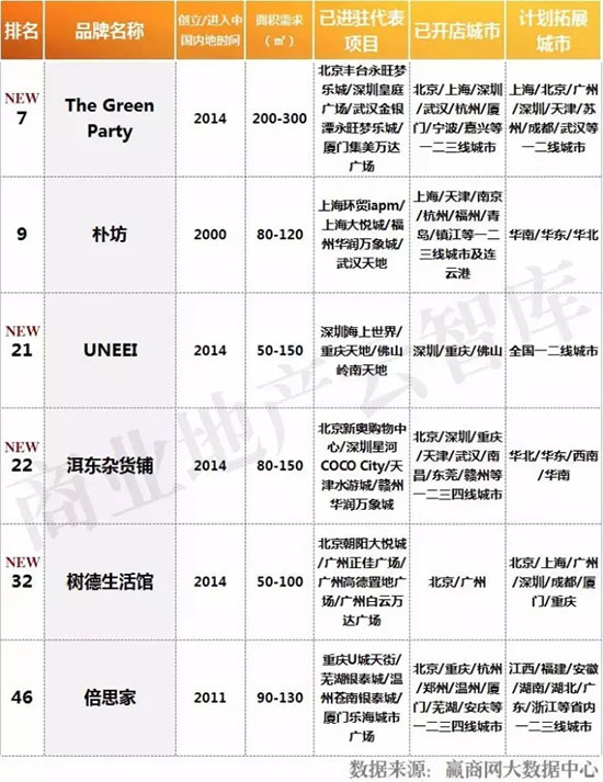 6席上榜品牌均为国内品牌,“杂货店”模式的创意生活馆品牌目前仍以国内品牌为主,其中新兴品牌共4席。