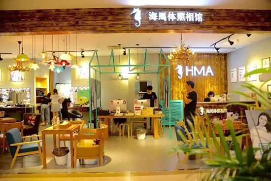 【海马体照相馆】全国首家进驻购物中心的证件照照相馆,仅有证件照拍摄及轻写真两大业务,设有化妆区、拍照区、修图区及休息区,提供各种道具以拍摄不同主题。采用线上预约制,可提高时间效益以及为购物中心贡献部分客流。该品牌目标打造成一个艺术美学的集合空间,除摄影外,还有规划增加美甲、咖啡、沙龙等空间。2017年计划于一二线城市拓展。
