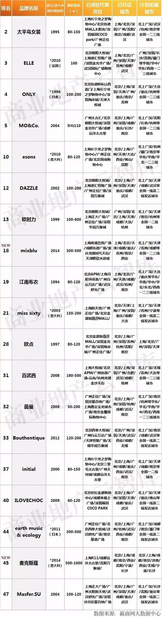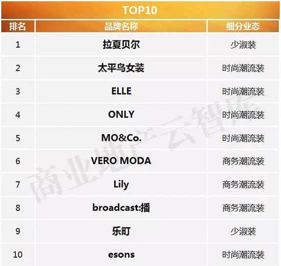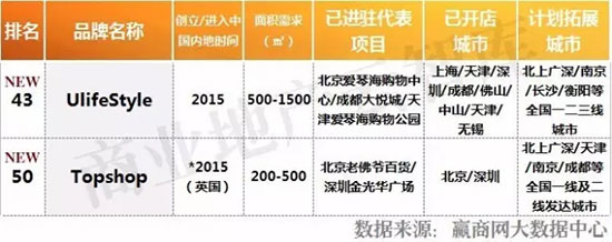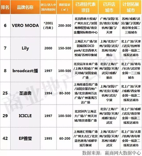 快时尚女装品牌上榜2席,均为2015年创立/进入中国的新兴品牌。