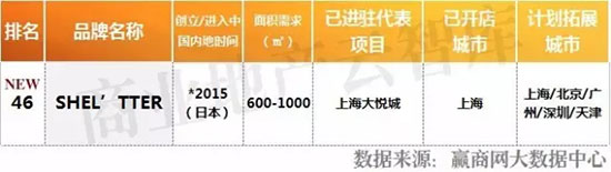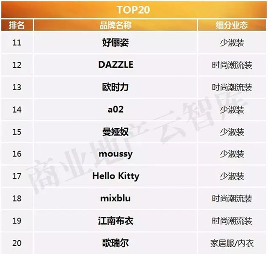 特别说明:未上榜品牌,除暂未达到我们的测评标准外,还可能存在如下原因:①未在赢商网上传品牌信息;②已在赢商网上传品牌信息,但相关数据因久未更新而无法采用,或品牌联系方式失效,我们无法核实。