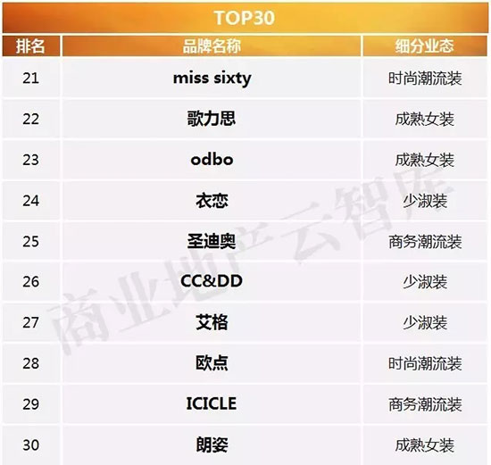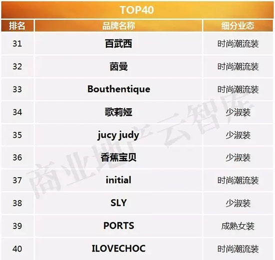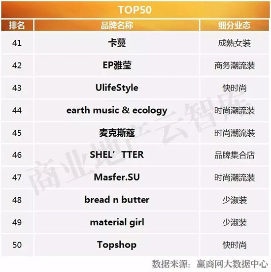 一、2016年度购物中心关注女装品牌榜TOP50