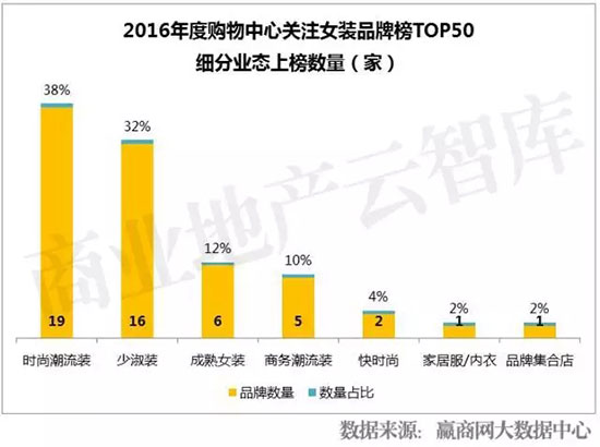 2、2016年度女装榜单TOP50细分业态概括