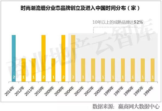 时尚潮流装中有52%为10年以上的成熟品牌。这批成熟品牌在消费者中累积了相当的口碑及实力,但在消费主力更替的新时代之下,也促使成熟品牌需在年轻一代中重新树立富有活力的形象,一系列转型创新举措应运而生。