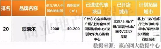 信息反馈:上榜品牌的各项信息采集于赢商网商务数据库和互联网,如有变动或纰漏,欢迎联系我们。微信号/手机:18620697665