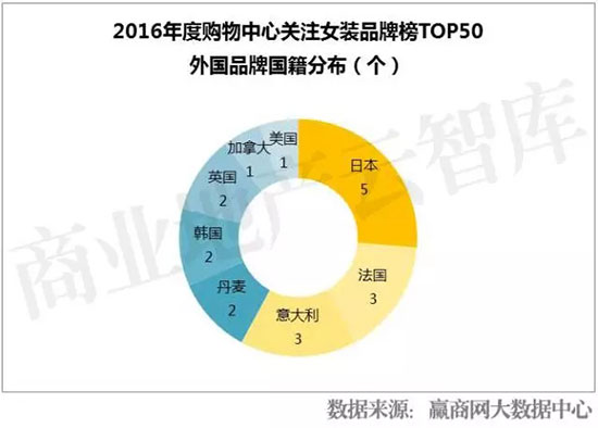 2、38%品牌来自国外,其中日本、意大利、法国品牌最受青睐