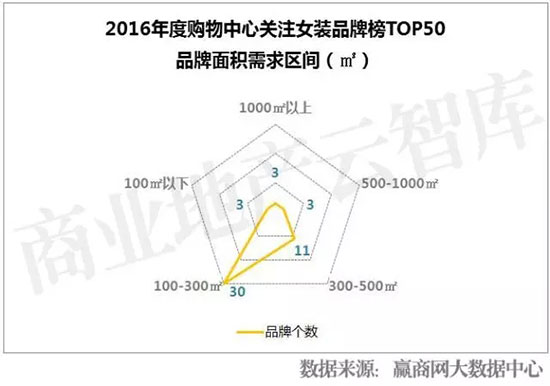 3、品牌面积需求集中在100-300㎡,集合店能为购物中心消化更多租赁面积