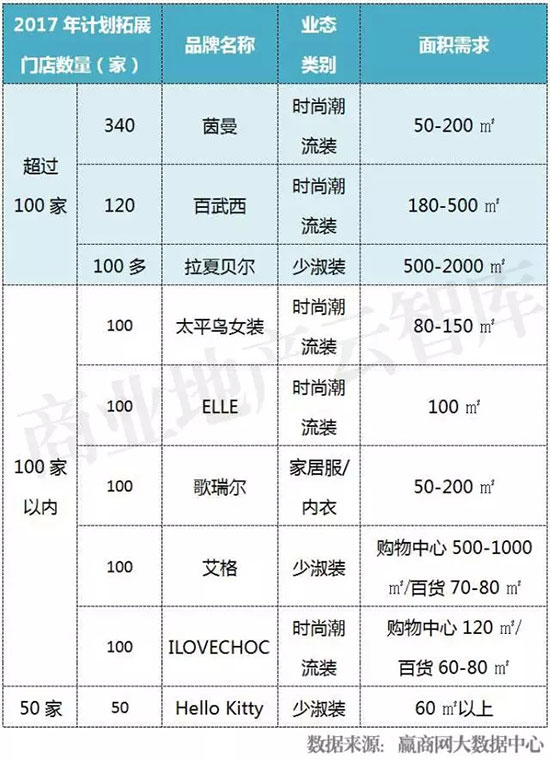 5、2017年强势拓店品牌(2017年计划拓展门店数量超过50家)